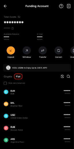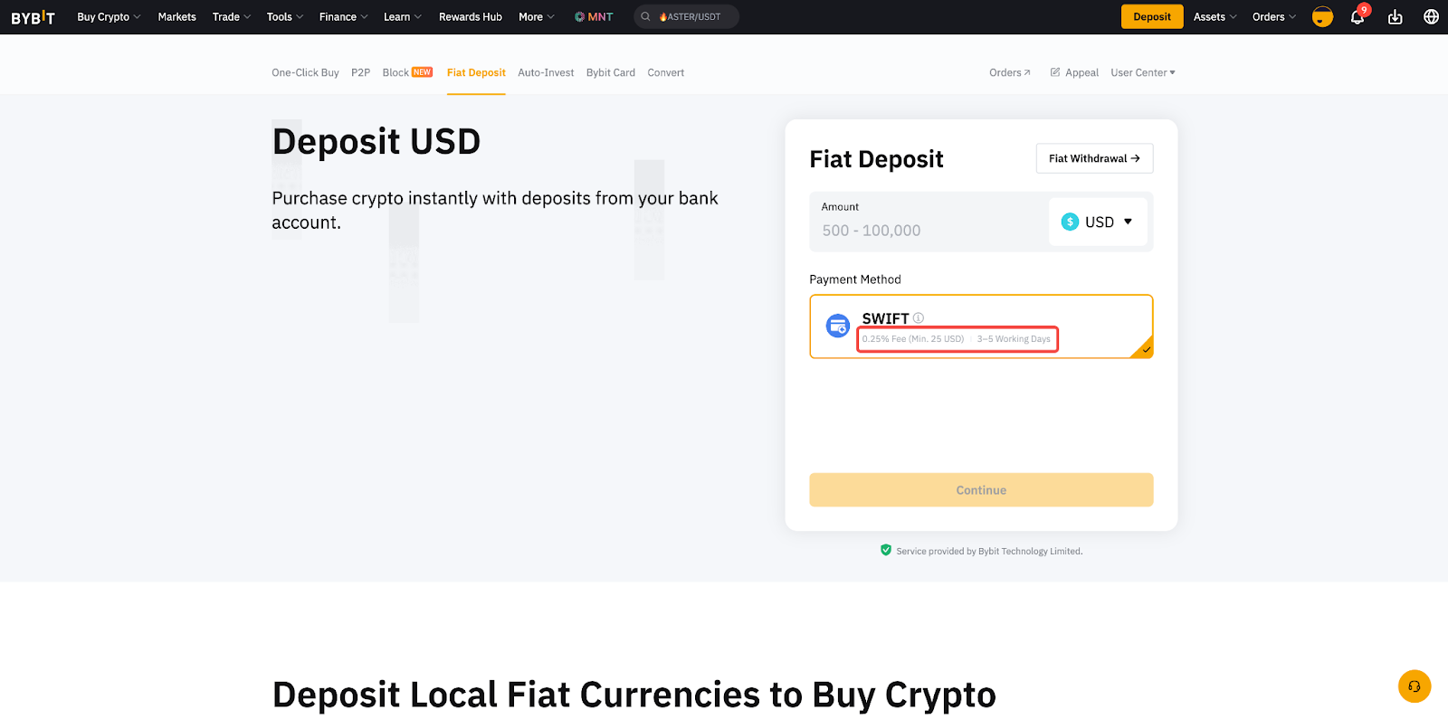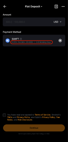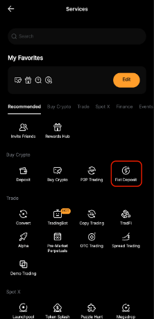 There may be fees associated with your fiat deposit depending on the selected fiat currency and payment method. You can view the applicable fee rates for each fiat currency and payment method by visiting the Fiat Deposit page and selecting your desired currency.