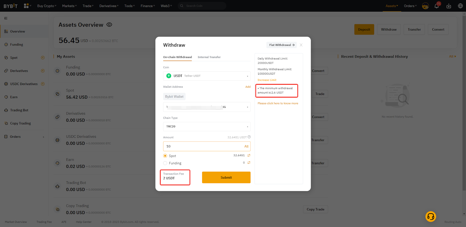 There are no fees charged on Bybit for internal transfers or on-chain crypto deposits into your Bybit Account.
