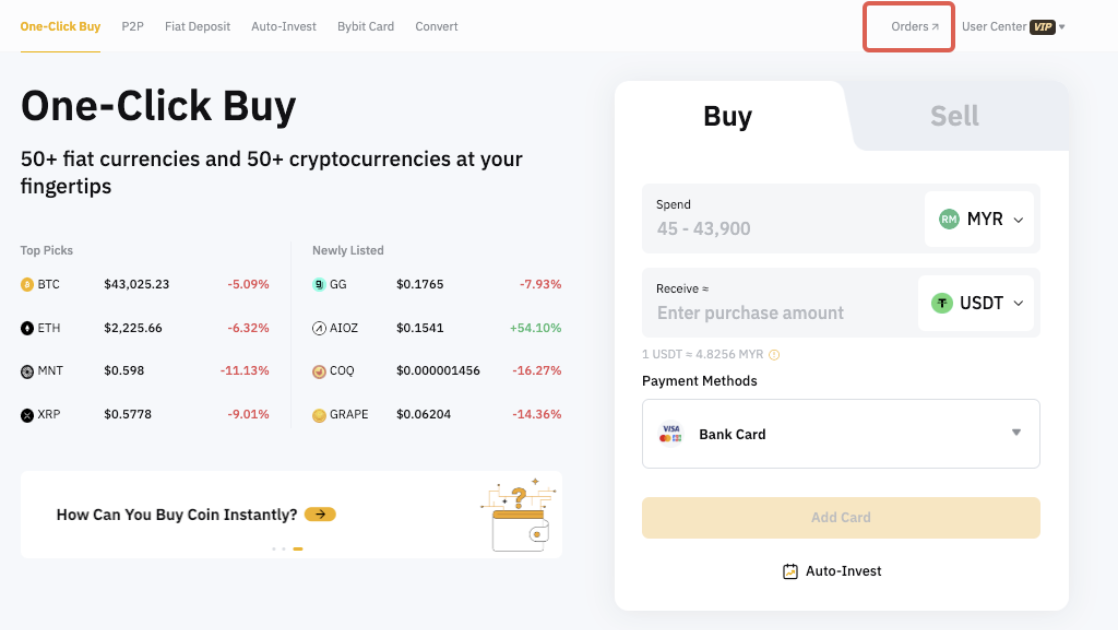 Click on Orders at the upper right corner of the One-Click Buy page to view your order history.