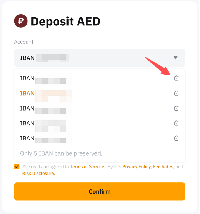 If you have reached the maximum number of linked bank accounts, you will need to unlink one of the existing accounts by clicking the Bin icon before adding a new one. You will need to enter the email or 2FA verification code for verification when removing a linked account.