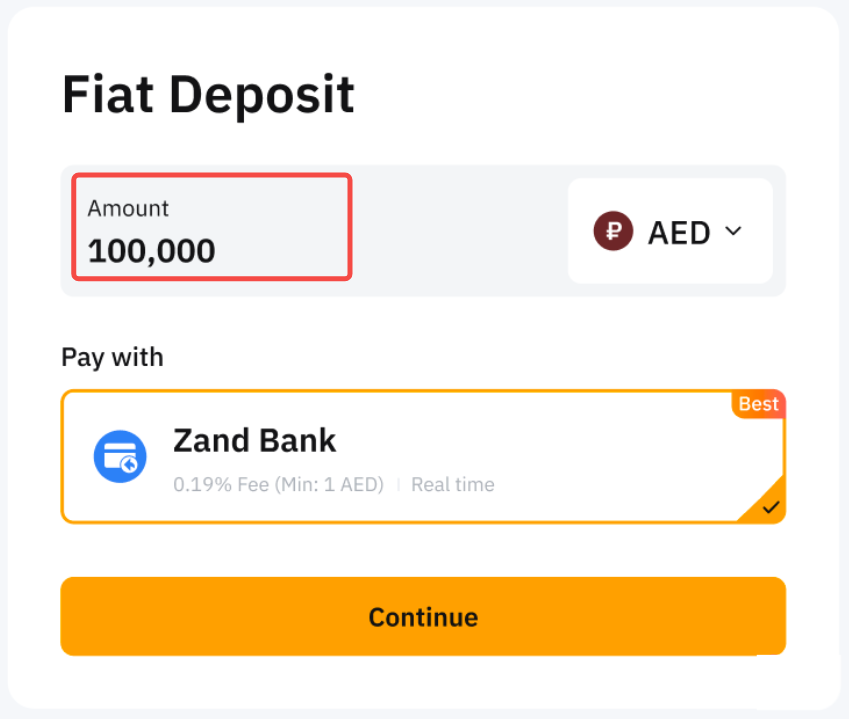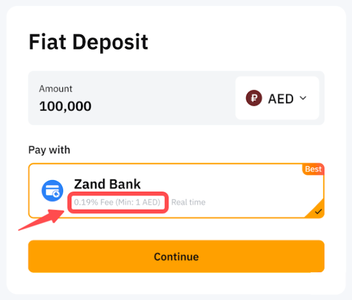 There may be fees associated with your fiat deposit. You can find the relevant fee rates applied on the Fiat deposit page.