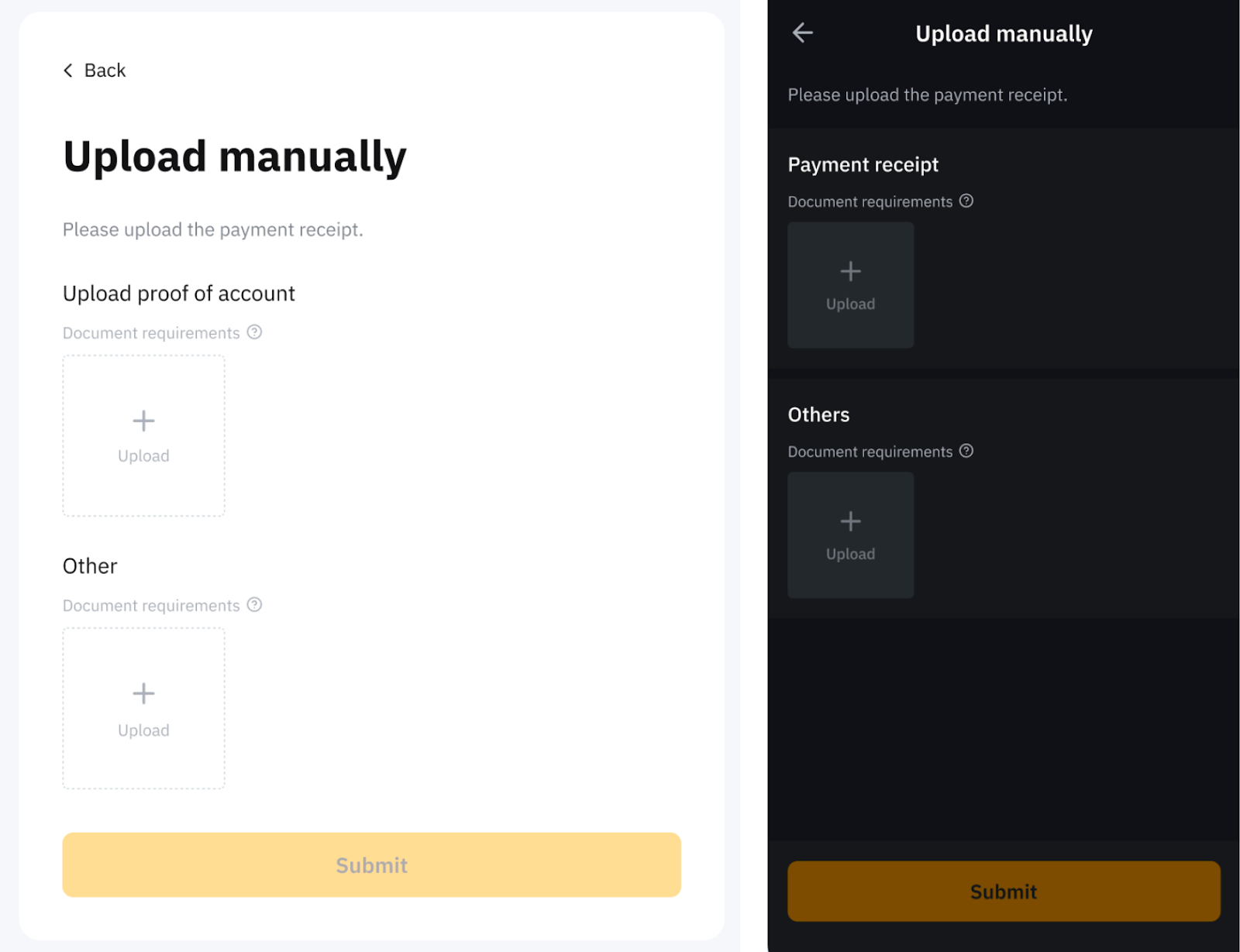 Additional documents will be required when risk is detected by our relevant team. Please follow the instructions to submit the required documentation for further review. The process usually takes 48 hours to complete.
