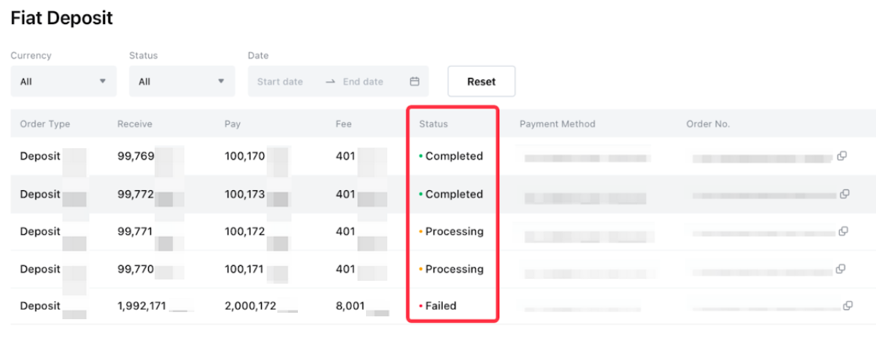 If your fiat deposit order has passed the processing time indicated and the payment has not been deducted from your bank account, you may disregard this order and proceed to place a new fiat deposit order. The "Processing" status should be updated shortly after the processing time is over. If your payment was deducted from your bank account and the status is still "Processing" after 3 business days, kindly submit a request here.