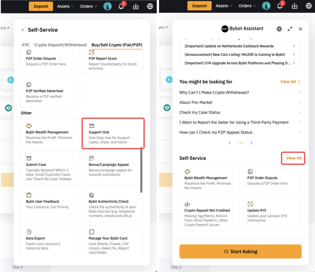 In addition to the direct link provided in the notification channels, you can also find the Support Hub submission portal at the Live Chat entrance.