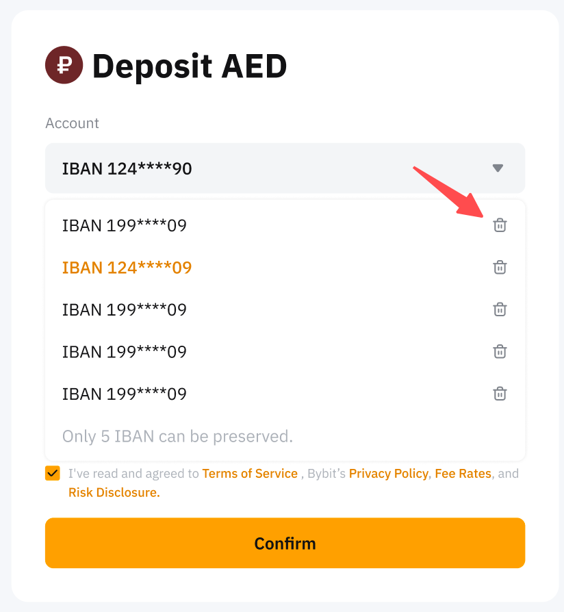 If you have reached the maximum number of linked bank accounts, you will need to unlink one of the existing accounts by clicking the Bin icon before adding a new one. You will need to enter the email or 2FA verification code for verification when removing a linked account.