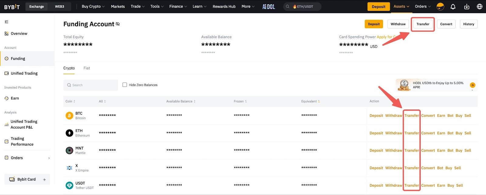 Here’s a detailed guide to help you transfer assets between your Funding and Unified Trading Accounts on Bybit.